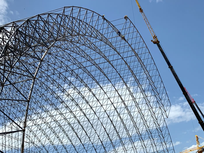 (2)网架加工前应对现场尺寸进行复测,确认无误后方可进行加工、安装;网架制作、运输、安装应遵守《空间网格结构技术规程》JGJ7-2010、《钢网架林芝螺栓球节点》JG/T 10-2009、《钢网架林芝螺栓球节点用高强度螺栓》 GB/T 16939-2016、《林芝钢结构林芝工程林芝施工规范》 GB50755-2012、《林芝钢结构林芝工程施工质量验收标准》 GB50205-2020。