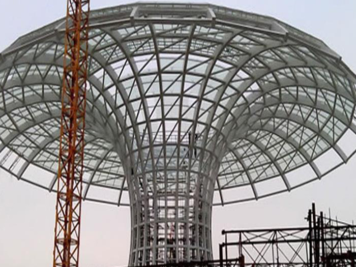 二、球形网架结构因其结构新颖,受力合理,自重轻、用钢量低等优点。如大型体育场馆球形林芝螺栓球网架、公共场馆球形网架、电厂林芝螺栓球网架、水泥工业球形网架、仓储物流球形网架、林芝干煤棚工业球形网架、林芝收费站林芝加油站球形网架、展览中心、影剧院、商场、航站楼、候车厅、工厂林芝车间、仓库、电视塔等球形螺栓球节点网架。国内球形网架结构主要分为:林芝焊接球节点网架及螺栓球节点网架两种。螺栓球节点网架其构件工厂内加工量较大,现场安装便捷,适用于现场工期紧,林芝施工条件、用电量受制约,网架形状复杂、林芝杆件定位困难的异形结构。螺栓球节点球形网架系统基本由林芝杆件、螺栓球、支撑支座等组成。按照节点形式可分为交叉林芝桁架体系、四角锥体系、三角锥体系等。支撑方式多为固定支座支撑。对于大面积、大跨度及有特殊受力或伸缩要求的网架结构可采用橡胶支座、滑移支座、球铰支座等支撑形式,以满足结构自身的受力稳定、均衡,便于内力释放等设计要求。